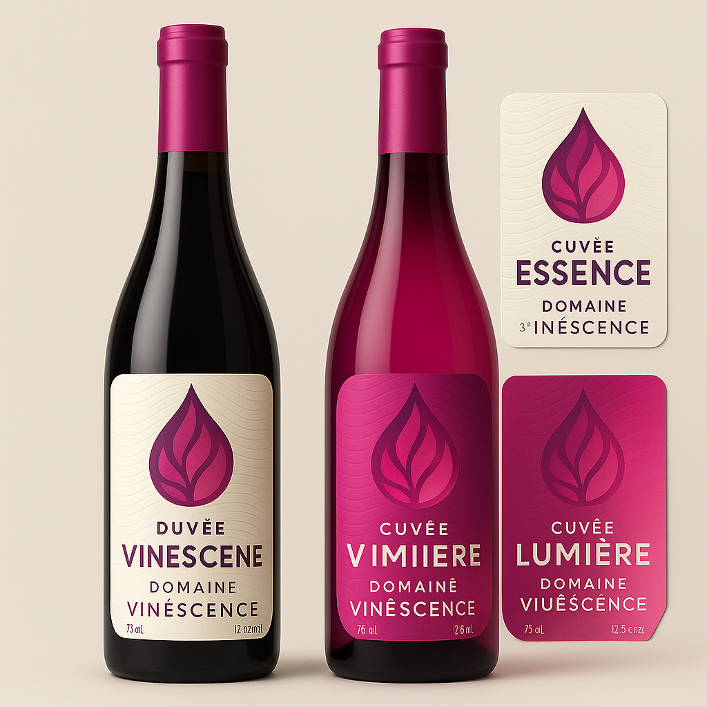 Au final, une signature visuelle claire, élégante et reconnaissable, du premier regard jusqu’à la bouteille entre les mains de vos clients.